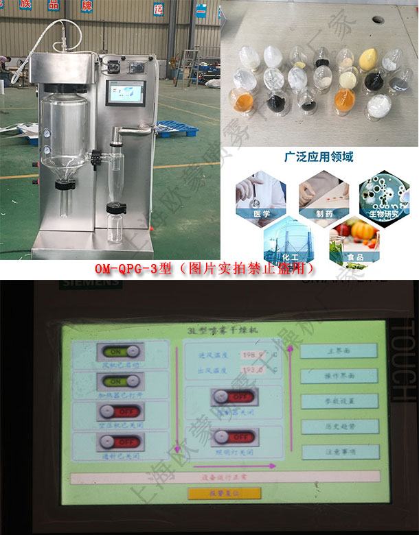 實(shí)驗室小型噴霧干燥機(jī)適用于高校、研究所和食品醫(yī)藥化工企業(yè)實(shí)驗室生產(chǎn)微量顆粒粉末,對所有溶液如乳濁液、懸浮液具有適用性, 適用于對熱敏感性物的干燥如生物制品、生物農(nóng)藥、酶制劑等。因為所噴出的物料只是在噴成霧狀時才受到高溫且是瞬間受熱,故這些活性材料在干燥后仍維持其活性成份不變。